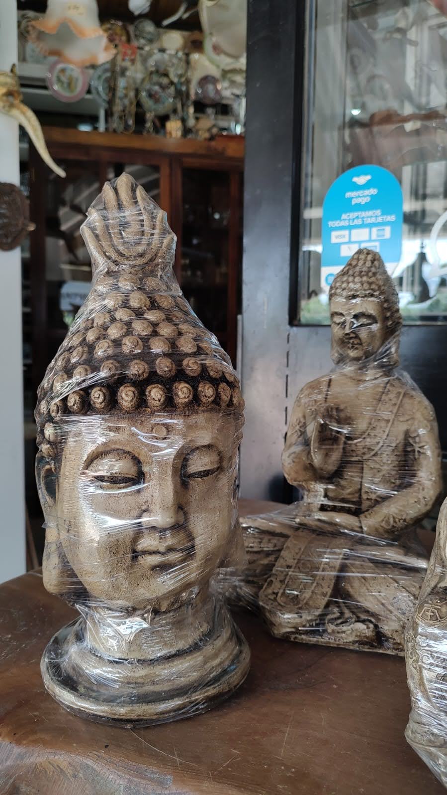 Cabezas de Buda: Se incluyen varias cabezas de Buda, caracterizadas por el ushnisha (protuberancia en la coronilla) y los rizos que forman el cabello. Estas piezas están diseñadas para la decoración de interiores, jardines zen o altares.