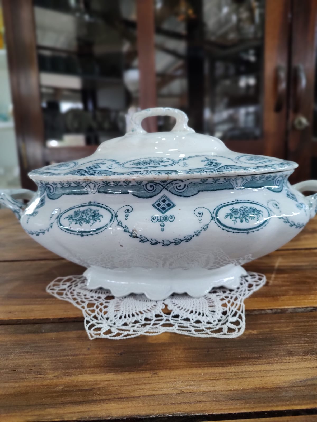 Cada sopera cuenta con tapa original y asas ornamentadas, ideales tanto para uso decorativo como para completar una colección de mesa antigua. Perfectas para amantes del estilo clásico, vintage o shabby chic.